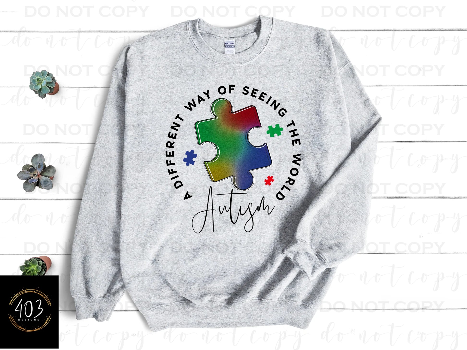 Celebrate neurodiversity with this beautiful and meaningful Autism Awareness sweatshirt. Featuring a colorful puzzle-piece heart and the uplifting phrase “A Different Way of Seeing the World,” this cozy crewneck is perfect for parents, teachers, therapists, caregivers, and anyone who wants to show love and support.