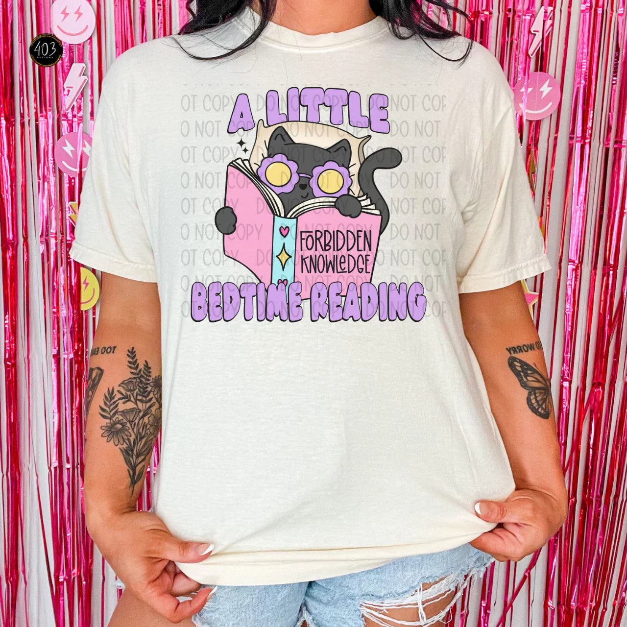 This fun and playful tee features an adorable illustrated “forbidden knowledge” book with pastel accents — the perfect mix of cute, cheeky, and cozy.