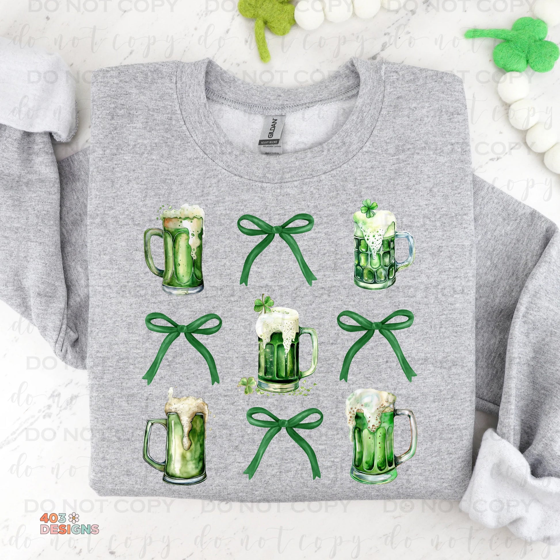 A fun and playful design combining beer mugs and bows for the perfect mix of festive and feminine. Great for St. Patrick’s Day, parties, or casual wear. Presses beautifully on tees, sweatshirts, and cozy lounge styles.